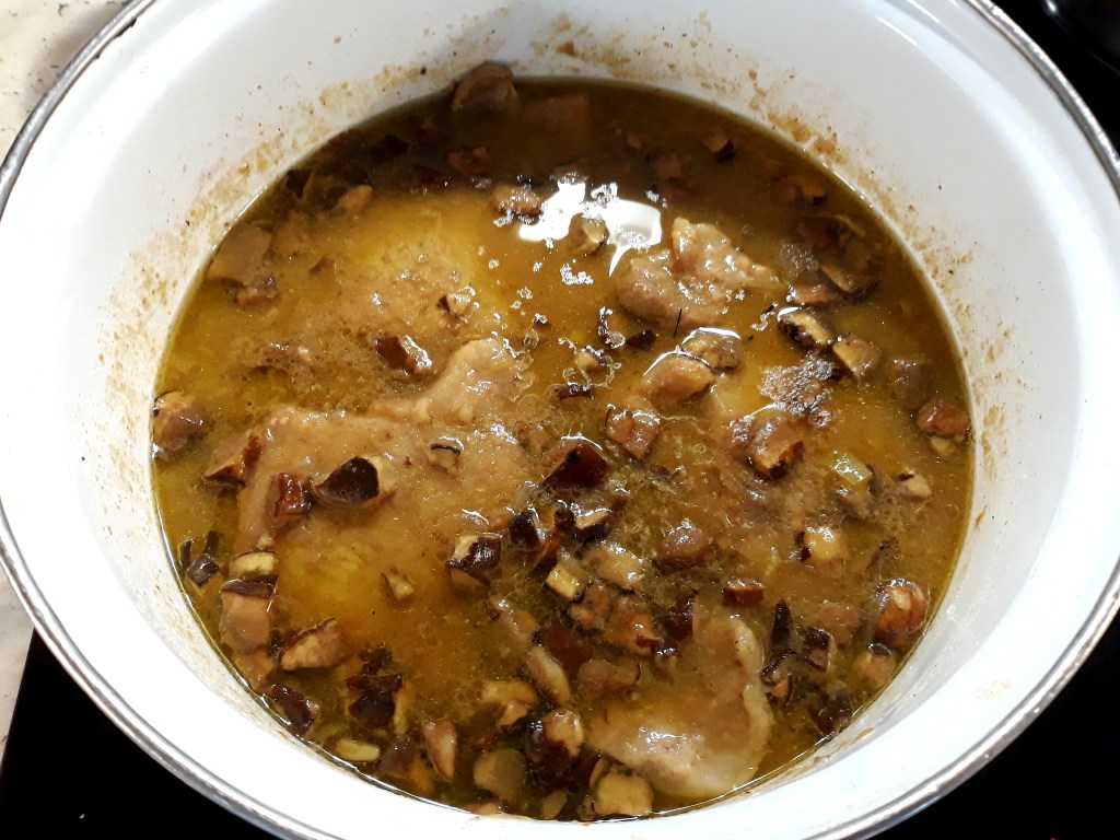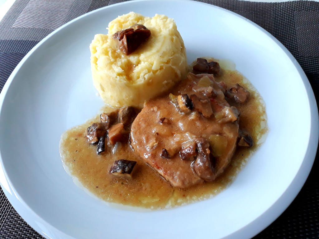 Když se řekne houby… buď je máte rádi nebo ne. Nic mezi tím není. Maso na houbách jde dělat jakékoli. Třeba hovězí roštěná je moc dobrá se sušenýma houbama a udělat jen takovou šťávičku. Kuřecí můžeme také udělat na houbách, třeba se smetanovou omáčkou. Já si dnes vybrala vepřovou pečeni…