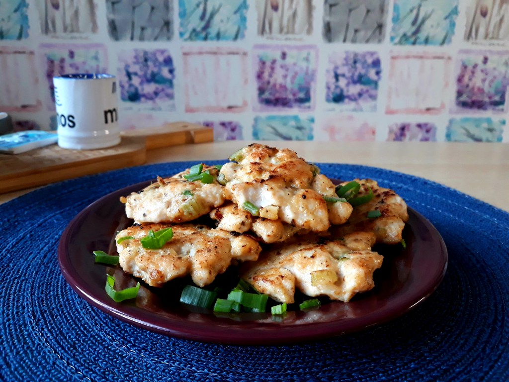 Kuřecí maso nakrájíme na malé nudličky, cibulku nadrobno, stroužky česneku na plátky. Vše smícháme, přidáme koření, vejce a zbytek surovin. Pořádně promícháme a dáme na chvíli do lednice. Pak opékáme na pánvi na oleji jako placičky.