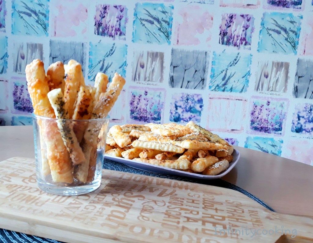 Suroviny na těsto smícháme a vypracujeme hladké těsto, které dáme na chvíli do lednice. Pak těsto rozválíme a krájíme na tyčky, které přendáme na pečící papír na plech a potíráme je bílkem. Posypeme kořením nebo sezamem nebo strouhaným sýrem. Pečeme na 180°C asi 15 minut. Musíte hlídat 😉.