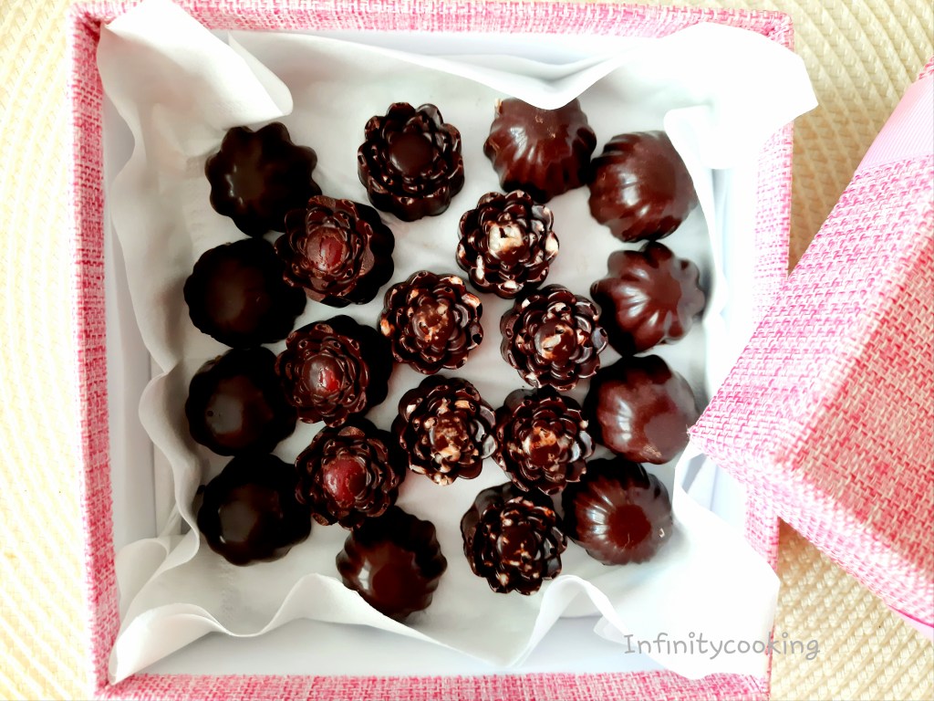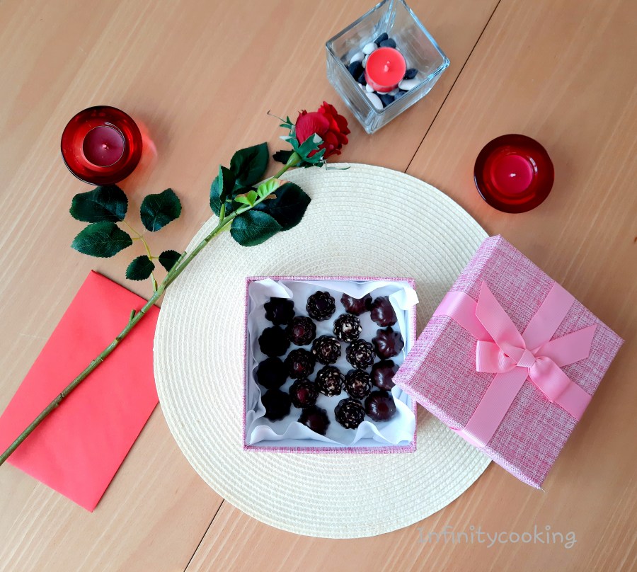 Slavíte tento svátek? My ano, ale jen tak zlehka, spíš symbolicky. No a protože moje drahá polovička má nejraději čokoládové bonbóny s višněmi nebo s ořechy, tak jsem se rozhodla je letos nekupovat v krámě, ale udělat si svoje…