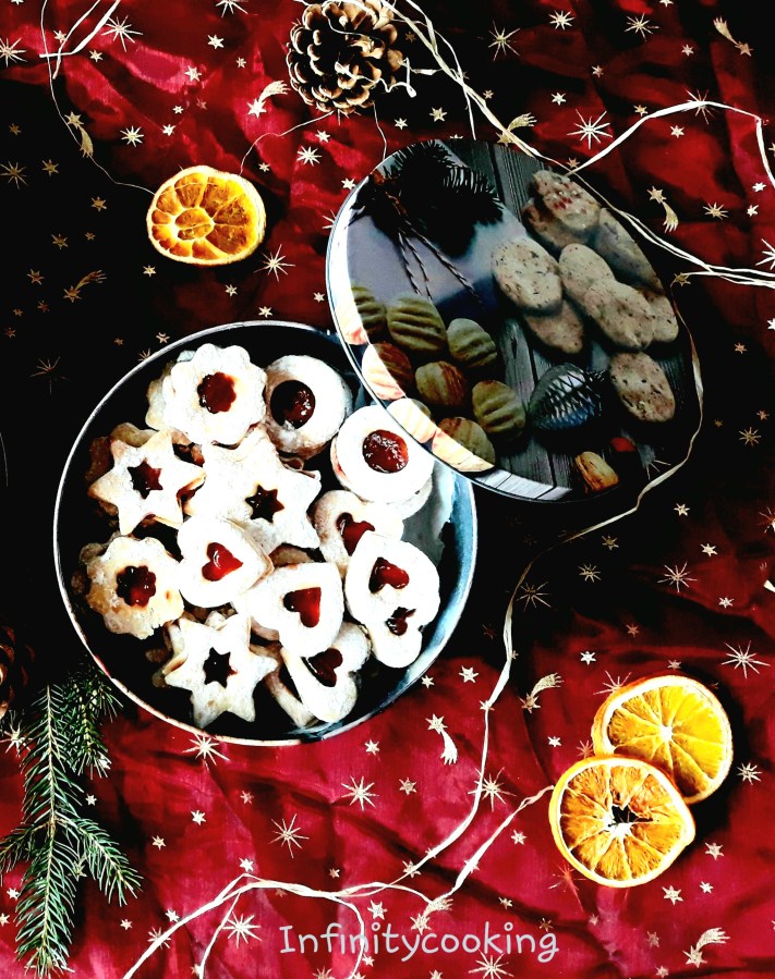 Postup je jednoduchý. Vypracujeme těsto, zabalíme do folie a dáme do lednice. A až se nám bude chtít, tak vyndáme, vyválíme a vykrajujeme různé tvary. Já vždy dělám spodní část plnou a vrchní část s dírou (otvorem), aby byla marmeláda vidět. Pečeme opět v troubě dozlatova a pak vychladlé slepujeme marmeládou k sobě. Nakonec obalujeme v moučkovém cukru.
