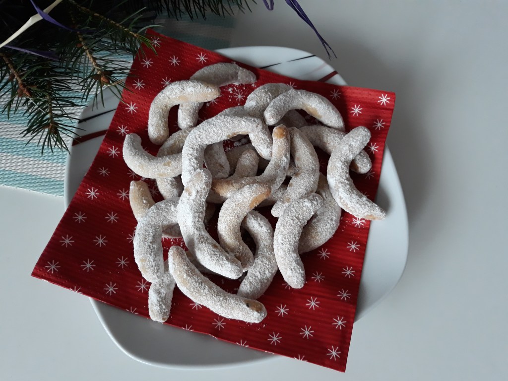 To je taková ta klasika, která je stejně nejlepší, že? rohlíčky vždy peču jako první. do těsta používám vlašské ořechy, ale někdo má třeba raději lískové nebo to namíchat, takže to nechám na vás. Pokud místo ořechů použijete mandle, tak je chuť ještě jemnější a jsou to vlastně takové mandlové rohlíčky. Ale to už pro mě není ono, je to pak něco jiného 🙂