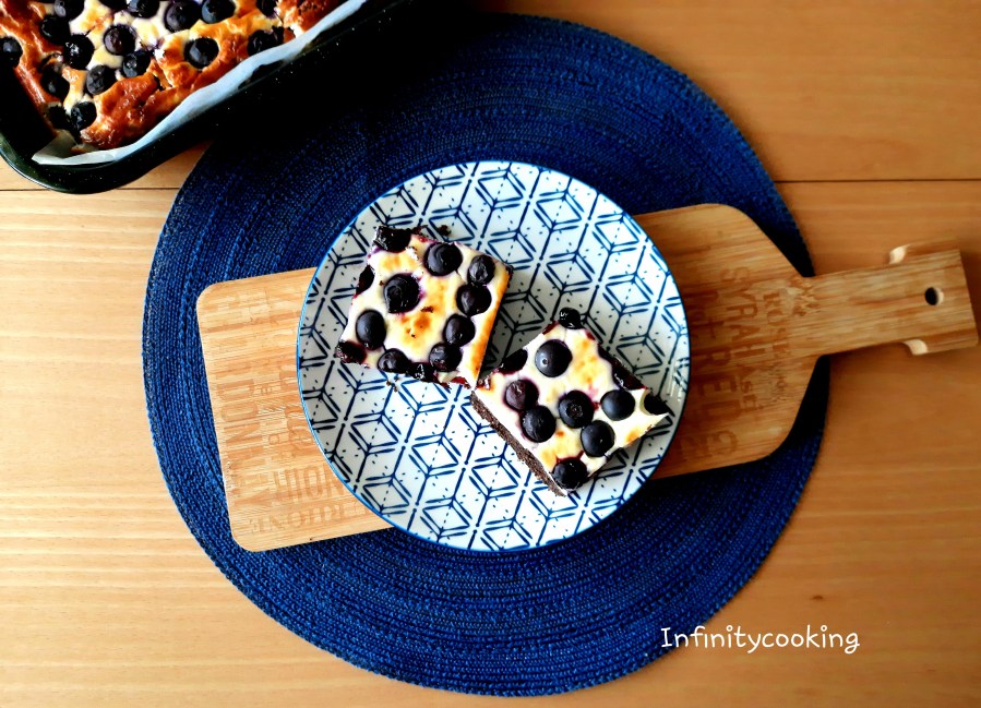 Rozpustíme si v mikrovlnce čokoládu a kokosový olej a smícháme. Přidáme vejce, ořechové máslo, kakao a zbytek surovin na těsto. Těsto je hustší, nalijeme (rozetřeme) do pekáčku na pečící papír. Připravíme si náplň a to tak, že smícháme všechny suroviny (tvaroh, sýr…). Opatrně natíráme na těsto. Navrch pak poklademe ovoce a dáme péct do vyhřáté trouby na 160° C. Pečeme pozvolna dokud není hotovo. Poznáte podle špejle.